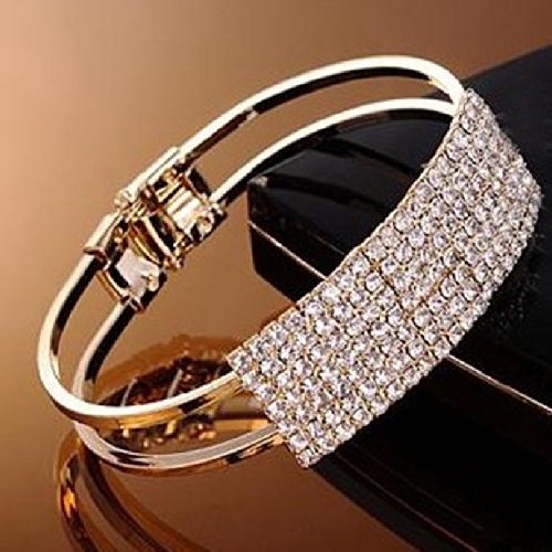 ZPS Fashion Lady Elegant Bangle Wristband Bracelet Crystal Cuff Bling Gift (Gold)