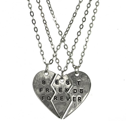 Fun Daisy Best Friends Forever BFF Golden or Silver Stainless Steel Heart Shape Necklace Set (BEST FRIENDS FOREVER-3 Silver)
