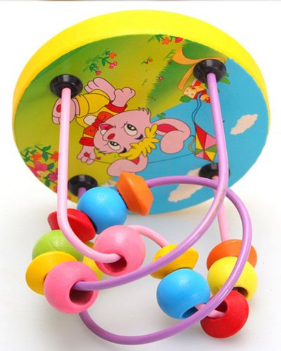 This round bead toy's design is very cute, and its very mini and printed with cartoon rabbit.The round bead toys have two twists orbit at a total, the track is made of high quality steel, the surface is adopts high temperature process of the lacquer that bake, color is gorgeous, feel is smooth, the baby can also carry the orbit to achieve the purpose of move the toy, simple and convenient.Colorful cartoon chassis is made of high quality wood, through fine grinding, polishing and chamfering processing, no burrs, and the surface is adopts green environmental protection paint, safe non-toxic.Then,the round bead's color is diversity, can teach baby to know the color, also can teach baby to operation basic math addition and subtraction, train baby's interest in mathematics and helps baby's intellectual development.The bottom of the toy mapped the lovely cartoon scene, vivid.A toy more style, but also can train baby's various ability, is a toys that very suitable for baby.