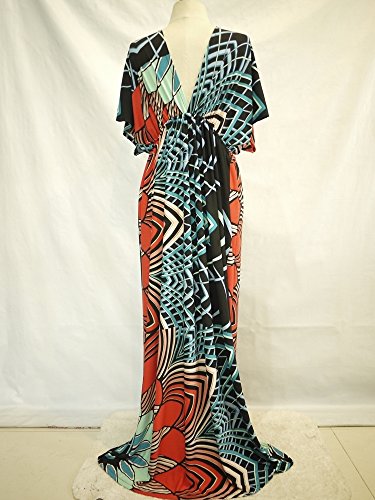 This plus size dress is a wonderful addition to your wardrobe. Perfect for cruise or any type of special occasion. Features sexy V neck design with V back. Light and stretchy fabric feels soft to the touch. This dress is on size fit XL-XXL/14-16. Made in Thailand.