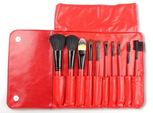 Features: Total 10 brushes for facial makeup: Foundation Brush, Concealer Brush, Eye shadow Brush, Eyebrow Brush, Blush Brush, Lip Brush, Mascara Brush... 1.Adopts high quality Nylon hair which provides superb ability to hold powder, soft and pleasing for your skin. 2. High quality and gorgeous aluminium brush handle. 3. Gorgeous and soft roll up snake pattern leather bag which is easy and convenient to carry, makes you elegant and attractive. 4. Ideal for professionals salon or DIY users. Specifications: Brush bristle material: Nylon hair Bag material: PU