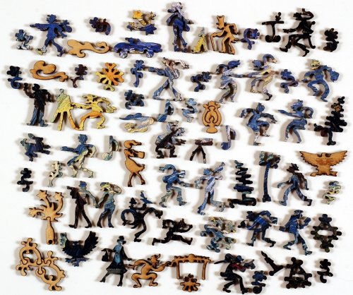 Liberty Puzzles are a throwback to the golden age of jigsaw puzzles. Each one contains numerous hand-drawn "whimsy" pieces intricately cut into the shapes of characters, animals, and geometric designs. They are works of art within art. The puzzles are made with 1/4'' plywood and use advanced print technology for eye-popping color.
