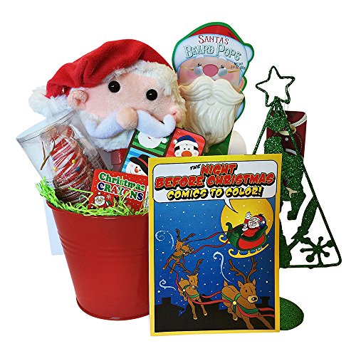 Wish that special child or grandchild a Very Merry Christmas this season include a special note from Santa Claus. Just let us know upon checkout what you want your note to say and we will personalize your gift basket for you. Fill their hearts with joy Christmas morning and sit back and enjoy the smiles on their faces when they open their Santa Claus Is Coming Best Christmas gift basket. Each Christmas gift basket is jam packed and an affordable Christmas gift your kids or grandkids will love!Product DescriptionYou better watch out, Santa Claus is coming to town with a colorful bucket of Christmas goodies,A colorful bucket 6x5Christmas treeChristmas plushChristmas stickersChristmas tree candySanta Claus candyChristmas novelty and moreMerry Christmas to one and all,