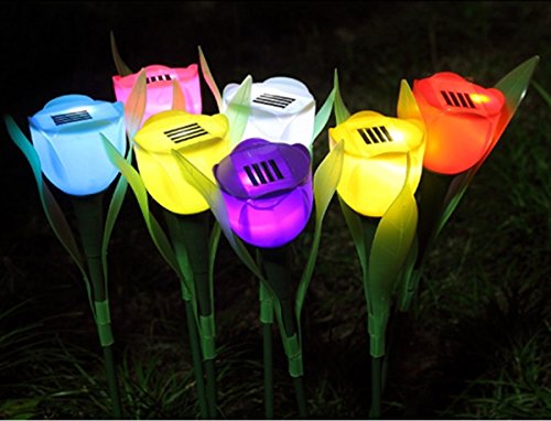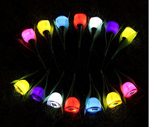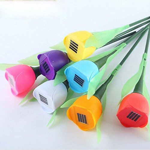 The lights is a good outdoor decoration. Wonderful decoration for wedding, party, ceremony, Christmas, valentine...year-round! These solar powered flowers are great gifts also. The lights can decorate gardens, walkways, flowerbeds, or anywhere in the yard. Beautifully colored tulips create a dramatic elegance to any outdoor area.Water proof,easy to install. No wires or outlets needed! This is a new design of our solar light, it charges by day, glows at night. Energy saving. Solar Panel: 2V 40MA. Rechargeable Battery (Included): One NI-MH AA 1.2V 600mAh. Size: 2.24''*2.24''*18.5'' This is a MUST HAVE product, be sure to ->> GET THIS PRODUCT NOW