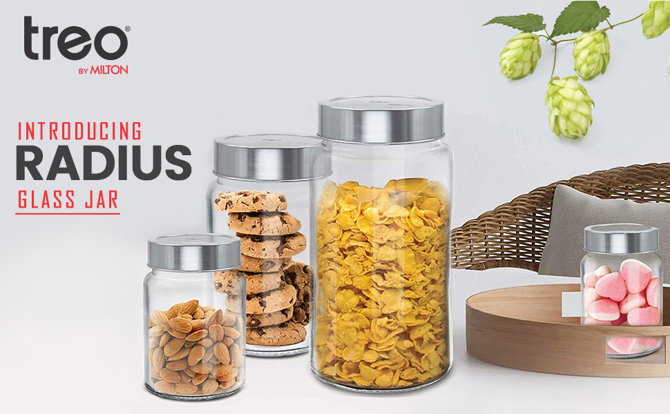 The Treo Glass By Milton Radius Storage Jar set includes three 310 ml transparent, BPA-free glass jars with wooden-finish lids. Designed for versatile storage of cereals, pulses, coffee, and more, these dishwasher-safe jars combine modern aesthetics with practical space-saving round shapes, ideal for a stylish, organized kitchen.