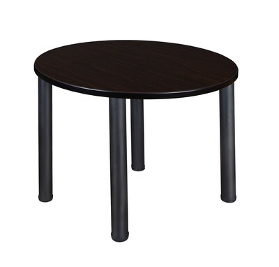 Description Give everyone more room with Kee tables. Kee post legs come four to a set and include adjustable leveling glides so you have a steady table with no wobble. Assembly is a snap with just a few screws. Give everyone more room with Kee tables. Kee post legs come four to a set and include adjustable leveling glides so you have a steady table with no wobble. Assembly is a snap with just a few screws. Table for training and breakroom Table top is constructed of engineered wood in mocha walnut finish Seats up to 4 Round-shaped table overall dimensions: 23-34" H x 36"Dia. Evenly distributed 125 lbs. weight capacity ANSI/BIFMA Rated Assembly required 5-year manufacturer limited warranty Give everyone more room with Kee tables. Kee post legs come four to a set and include adjustable leveling glides so you have a steady table with no wobble. This 36-inch round table assembles in a snap with just a few screws. The table is constructed of a thermal fused melamine Mocha Walnut laminate tabletop that is 1-inch thick and finished with a black T-Mold edge band. Laminates are scratch, stain and scald resistant and wipe clean easily. A sleek alternative to pedestal style bases, this set of post legs comes in a classic black to match any decor. The legs are constructed of tubular steel with adjustable glides on the bottom of the base. Kee tables are backed by a 10-year limited manufacturer's warranty. Specifications True Color : Mocha Walnut Series or Collection : Kee Assembly Required : Assembly required Table Type : Tables Diameter-inches : 36 Seat Capacity : 4 Table Shape : Round Weight (lbs.) : 35 Capacity (lbs.) : 125 Table Certifications : ANSI/BIFMA Warranty : 5-year mfg. limited warranty Brand : Regency Seating Customizable : No Weight : 38.50 lbs. per Each