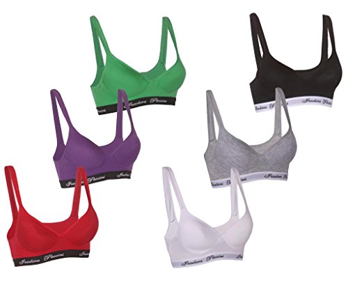 Bras are available in 6-pack or 3-pack or just 1 piece please select; 70% polyester 20% cotton 10% spandex; Elastic band in the bottom; straps are not adjustable; Molded cup; Wire free