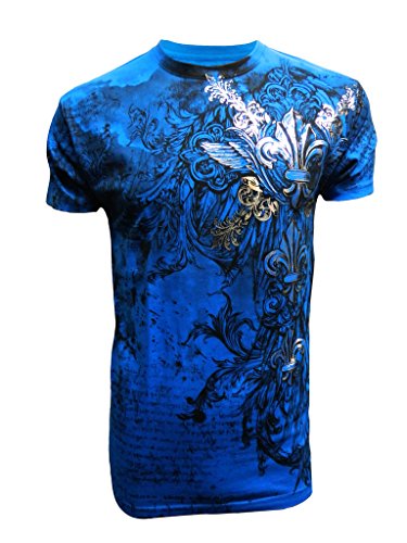Ekus Men's Konflic Tribal Fleur De Lis Muscle Tee XL Turquoise