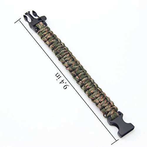 This military paracord survival bracelet is hand woven from military spec, 300-lb. paracord. Material: 7 Strand Paracord, Strand 550LB Function:t could be used for shelter building, splint building, spear lashing, building animal snares,Camping, Hiking, Outdoors, Utility, Emergency, Survival and many other tasks. All bracelets are 100% tied and assembled by hand Lifetime Warranty Paracord is strong but NOT intended for mountaineering/climbing Delivery time depends on destination and other factors, it may takes over 10 days. If you don`t receive the item, after 15 days, please contact us, we`ll investigate and solve the delivery problem.