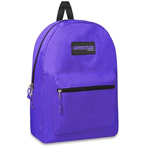 MADE FROM NEW & IMPROVED LONGER LASTING MATERIALS! This Adventure Trails backpack measures 17 x 12 x 5.5 and is made out of durable 600 denier polyester. It comes with a full front zippered pocket, and padded adjustable straps. This pack features wide range fashionable colors which includes black, blue, red, gray, pink, purple, turq and green.