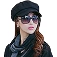 Ladies Houndstooth Cap Women's Short Brim Visor Beret Fashion Casual Hat Retro British Style Elegant Winter Flat Hats for Women ('6 7/8-7 1/8') Black 1 Piece