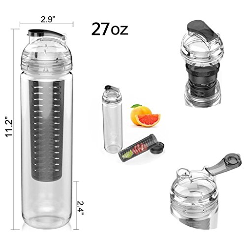 Why Fruit Infused Water? We all know the great health benefits of drinking more water. It increases energy and relieves fatigue, promotes weight loss, flushes out toxins, improves skin complexions, and boosts immune systems... But what if you don't like drinking old boring water or are addicted to unhealthy sugary sodas? The Fruit Infuser combines the great health benefits of fruit and water into one easy to use water bottle. By using your favorite fruits, you can create delicious, fresh and healthy flavored water that you know you'll love! How to use? 1. Select your favorite fruit such as lemon, kiwi, strawberry, watermelon, mango, apple... your options are endless. (TIP - you can experiment with herbs and vegetables as well, our customers rave about mixing mint leaves with cucumbers for a refreshing summer drink) 2. Put the ingredients you selected into the inner infuser tube and add water. 3.Shake it up! You can enjoy it right away or leave it in the refrigerator for 15 mins or more to enjoy extra flavor!