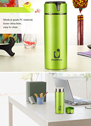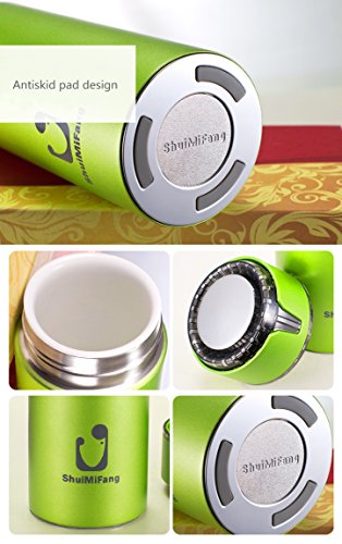 You won't find a stainless steel thermos mug with a better design anywhere else online. It looks fantastic with real bone China lining inside. It is a premium product.Double layer stainless steel vacuum thermos The unique ceramic liner design,Super insulation performance -Treat yourself to a product that actually WORKS! Our thermos mug take you a more pleasing lifestyle. The water in the thermos mug is very sharp looking. The bottom of the thermos even has little rubber feet on it so it grips the counters tops. It fits inside the drink holder in your car and you will really enjoy taking a travel mug of hot coffee or tea in it our thermos mug has Excellent sealing performance to Ensures no accidental spills. Stop worrying about liquids sweating in your bag or purse.Our double-walled vacuum insulation technology keeps your drinks ice cold up to 12 hours and toasty warm up to 8 hours.