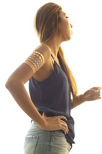 Accessorize your skin with these metallic body art temporary tattoos. Ideal for Halloween, the beach, parties, concerts, music festivals, and more, these innovative and non-toxic tats are applied in just a few minutes using water and can last for up to 3- 6 days. The gold and silver are true to color. Funny tattoos for girls