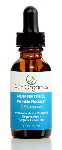 We use the highest concentration of Retinol available at 2.5% and work hard to provide the most natural skin care possible. - Highly effective in diminishing the appearance of fine lines and wrinkles - Evens out your skin tone and texture for a brighter and clearer complexion - Visibly reduces the appearance of pigmentation, blemishes and other spots - Helps with unclogging pores, reducing acne marks and in minimizing breakouts While Retinol is unique and brilliant on its own, our PUR Retinol Serum's teamwork of the right ingredients makes it truly shine: - The wildness of Retinol is tamed by Plant Derived Hyaluronic Acid, which locks in moisture to effectively minimize dryness or irritation - Because of their high antioxidant content, Green Tea and Vitamin E work beautifully together to prevent the signs of aging - The end result is that this serum is a gentle formula that is suitable for all skin types and safe for everyday use MANUFACTURER GUARANTEE: PUR Organics offers a 90 Day 100% Satisfaction Guarantee on all its products. Hassle free money back, with no need to return the bottle! When you order a bottle you will see the results for yourself. After 4-6 weeks you should start seeing and feeling a difference in your skin. We hope you love the results as much as we do.