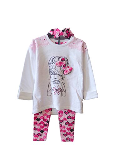Fleurish Girl Embellished Long Sleeve Pant Legging Shirt Set with Headband (7, White Pink Lace)