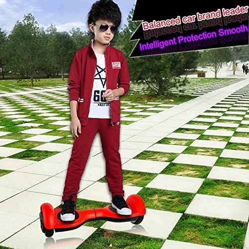 Specifications Weight: 4.5kg Max Speed: about 5km/h Endurance mileage: about10km Max Riding Angle: around 15°-30° (Vary depending on rider's weight, road condition and temperature) Waterproof and Dustproof Level: IP54 Charge Time: 2 hours Max Load: 60 Kg Product Instructions Step One: 1.Start SCV 2.One foot on the car,step another quickly when the body of the car is in balance. 3.After on the car: -Keep the center of gravity is located in the middle of the body -Relax yourself, and maintain the stability Step Two: Go forward:double toes press down gently,start the car. Draw back:heels press down gently Turn:The toe of left foot or right foot pressing down,the car will turn left or right Get off:You MUST get off it from the back when the car is in balance. Package Contents: 1 * Self-balance Scooter 1 * Battery Charger 1 * User Manual 1 * Helmet 2 * Bracer and Genouillere Warnings Recommended Age 14 and up. Players under 14 or over 45 are supposed to find your learning partners. Check every parts to make sure they are in good condition,including the power. Beginner, you will need someone alongside leaning or to hold on a solid object. The principle of SCV is that the body's center of gravity control the direction of the car. Kids need to wear protective gear on to avoid falling off and hurt.