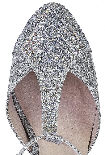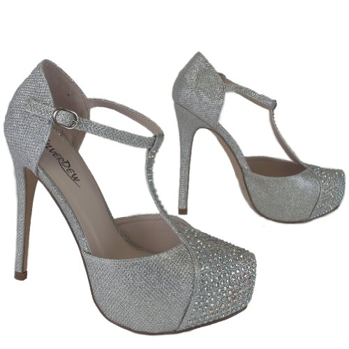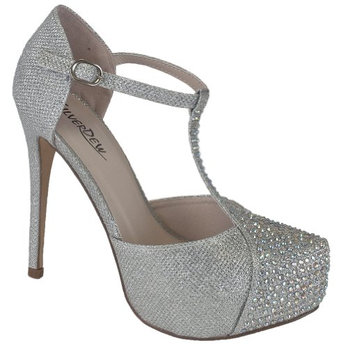 Silver Dew Crystal-02 Women High Heel Bridal Shoes Party Wedding Prom T-Strap D'Orsay Platform 9 US