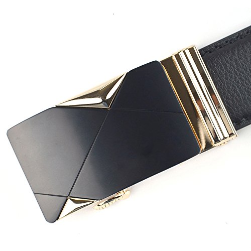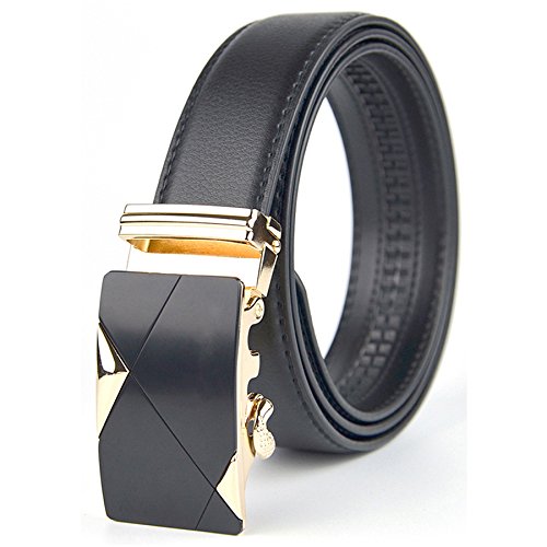 1:Imported 2:Top cow leather strap matching with quality alloy buckle. (The buckle may be a little heavy due to the metal material.) 3:Durable rubber ratchet. Auto Lock Buckle (Sliding Buckle), No holes in belt,easy to use. 4:1 3/8 '' inch (35mm) wide strap. Detachable belt buckle. 5:Belt Sizes (Full-length of belt strap): 44", 46", 48", 50", 52" (110cm, 115cm, 120cm, 125cm, 130cm). 6:Trim to fit. If the belt is too long for you, you can trim the strap length to fit your size. 7:It is a good choice when you need a business belt or casual dress belt.