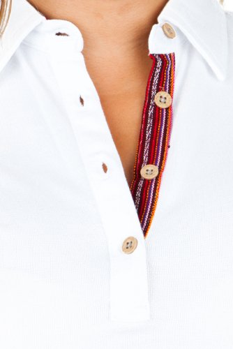 Short sleeve classic fit polo shirt. Made with 100% fine cotton and brushed thread. Handmade Mayan 4 button placket gives this shirt distinctive structure and colorful detail. Small embroidered frog logo at left chest. Machine washable. Available in sizes ranging from x-small to large.