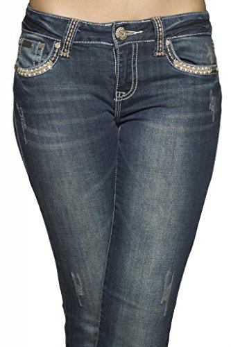 La Idol Jeans Embroidered Wave Design Rhinestone Studded Embellished Dark | Desertcart Vietnam
