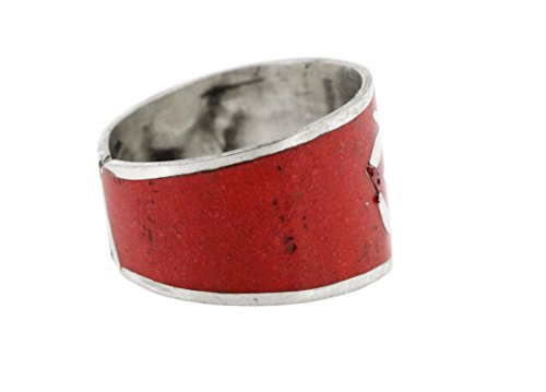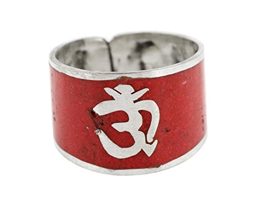 - Handmade Tibetan Om Ring Made from White Metal Alloy and Imitation Coral (Not Natural Stone)