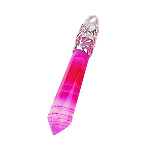 Iminibox Natural Amethyst Pendulum Healing Stone Pendant for Necklace Unisex Gift (Buy One Get One) (Stripe Rose Red Agate)