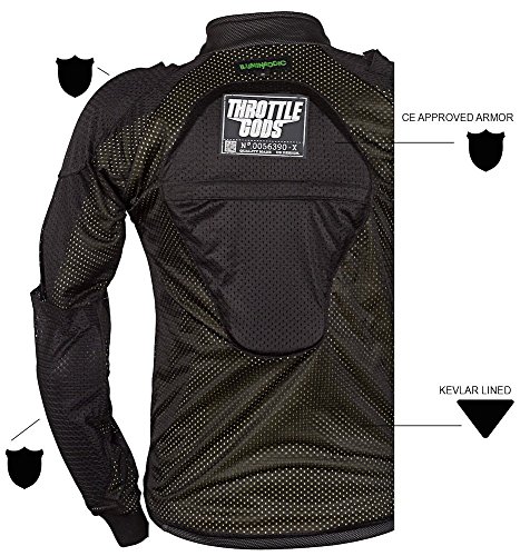 Shoulders, Elbows & Back CE Approved Armor Kevlar Lined YKK Zippers WaterProof and Windproof Available in Sizes: S, M, L, XL, XXL, XXXL Please Check Size Chart for Fitting. Jackets Run Small due to all the extra Armor & Removable Winter Liner.