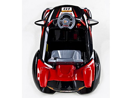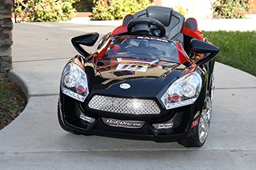 Black Hot Racer #19 Kids Ride On Car + R/C Remote & MP3 If you're a 2-4 year-old looking for a fun ride on car with some neat features at a great price, then look no further than the Hot Racer series of ride ons. With it's upgraded 6V motor & battery, you'll do 0-2.5MPH in less than 3 seconds. Features include working headlights, horn, turn and music sounds, seat belt and in-car forward and reverse control. While it comes with a remote control for parents to train and guide younger children, the controls are intuitive enough that they'll figure it out in no time. Your toddler will have hours of fun riding in this exciting toy and you'll enjoy the opportunity to effortlessly guide them with the remote. It's a great way to take them on their "first drive". Some assembly is required...about 45 minutes. Features: • Full Remote Operation Up to 30 ft away • Easy Manual Operation Using Steering Wheel/Foot Pedal • Up to 2.5 MPH forward plus reverse • MP3 Auxiliary Connection / Built in speaker • Functional front lights • There is an adjustable seat belt for one • Perfect for children 2-4 years of age • Weight capacity of 66 lbs • Horn and IC Sounds • Plastic wheels with Traction Strips in Rear Specifications: • Color: Black • Rechargeable 6V 10Ah Battery • Drive Motor: 1 x 6V • Steering Motor: 1 x 6V • Speeds: Approx 2.5 MPH • 40 MHz Remote Control • Dimensions: 44"L x 25"W • 110V Wall Charger • Model # EPB639BLK
