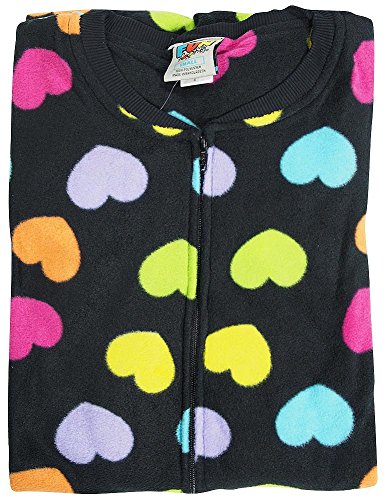 Fun Footies - Ladies Hearts Goodnight Blanket Sleeper, Black, Multi, Zipper Front, Ribbed Neck and Cuff Wrists, Elastic At Ankles, Gripper Sole, Size Extra Small = 4'1 Small = 4'5 Medium = 4'8 Large = 4'11, Flame Resistant, 100% Polyester, Made in Bangladesh, #367454 36-745