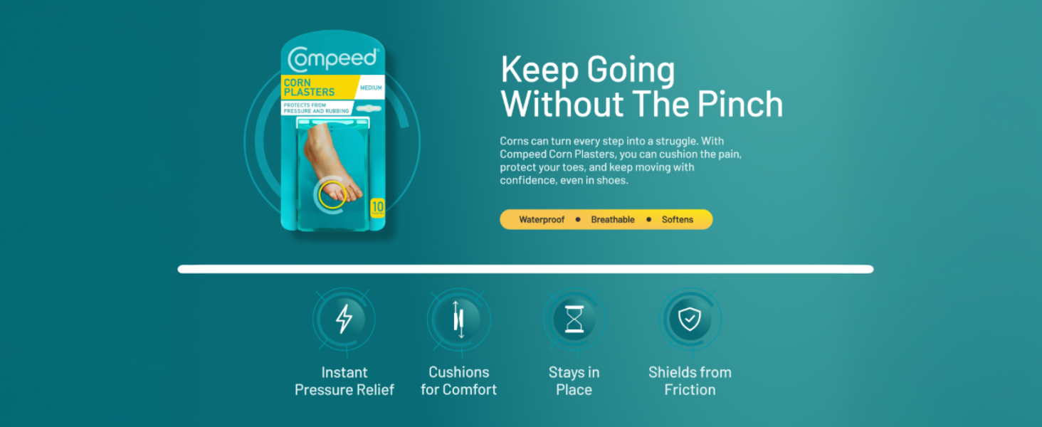 Compeed Corn Medium Size Plasters leverage advanced Hydrocolloid Technology to create a second skin that cushions and protects corns, providing instant pain relief and accelerating natural healing. Waterproof and durable, these plasters stay securely in place for days, making them perfect for busy professionals who demand effective, discreet foot care on the go.