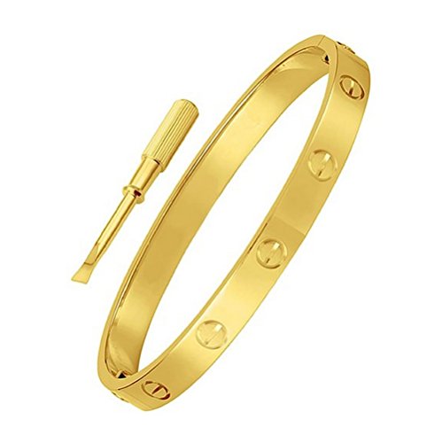 SynoTM Titanium Stainless Steel Screw Head Driver Oval Gold Bangle Bracelet for Men & Women