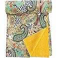 This queen-size Kantha quilt is a handcrafted cotton masterpiece featuring traditional Indian paisley embroidery. Measuring 90x108 inches, it offers lightweight warmth and vibrant multicolor patterns, perfect as a bedspread or throw. Each piece supports rural artisans and brings authentic cultural artistry into your modern home.