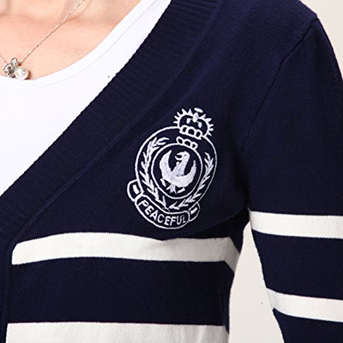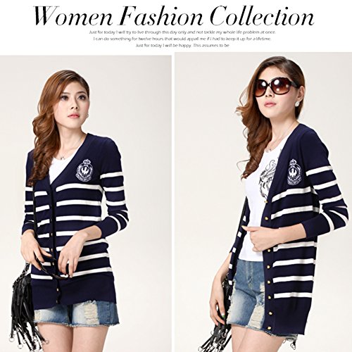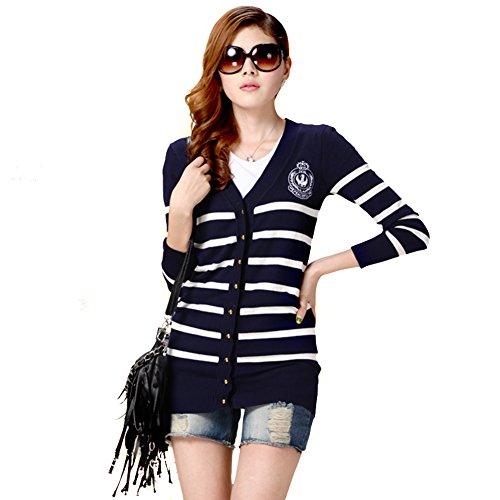 Locomo Women Blue White Stripe Striped Pattern Long Sleeve Cardigan | Desertcart Vietnam