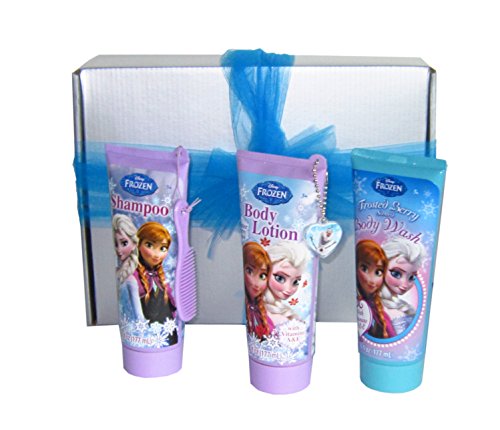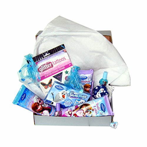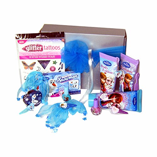 Frozen Beauty Set provides hours of luxury, pampering, and a lot of Frozen fun. For bath time there is a body wash, conditioning shampoo and lotion all in the delicious Frozen or Winter Berry scent. Don't forget to use the magic towel (either Elsa or Olaf) which expands into a pretty Frozen wash cloth. After the bath, it's time for a pedicure. While waiting for the polish to dry, why not make a snowman with the Olaf snowman gummies that will make 4 snowmen. A night out you say? Not a problem! There are enough Frozen accessories in this Frozen beauty cosmetic set to hit the town looking so beautiful, Ana and Elsa would be green with envy. And what makes Glitter and Gumdrops Stuf't items so special? We stuff everything in a classy silver box along with tissue paper and then tie a big turquoise tulle bow around it. It's all ready for the recipient to enjoy!