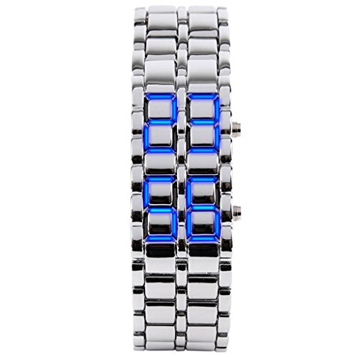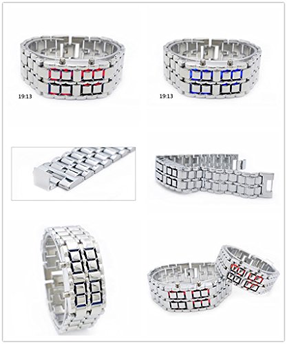 This fancy wrist watch displays the current time with custom LED that is built right into the band. The stylish stainless steel design is perfect for any outfit whether casual, business or formal attire. With the simple press of a button, the watch will display the time with the hour illuminating in LED on top and the minutes illuminating in LED on the bottom. package Content 1 x Lava Style Watch