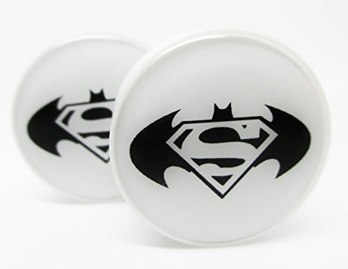 5/8" (16mm) Batman Vs Superman - White - Acrylic Ear Plug - Double Flared Saddle - New *Pair*