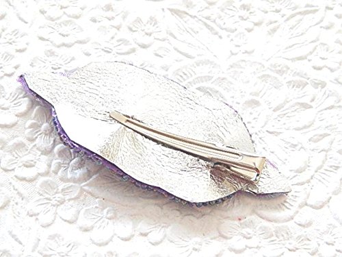 Blue art-deco style applique is securely attached to an alligator clip. Measures 3 inches long.