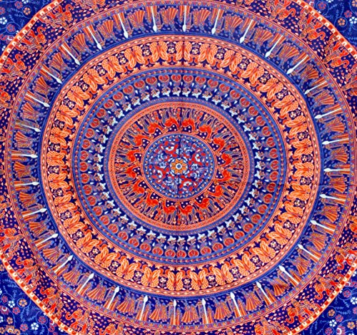 PRODUCT SPECIFICATION:- DESIGN :- Traditional print sign on bed cover totally handmade print on cotton fabric ITEMS :- 1 Sheet FABRIC :- 100% Cotton Fabric Handmade USAGE :- This gorgeous piece of art can be used as Bed Cover, Bed Spread, Table cloth,Curtain and as a tapestry or a wall hanging SIZE :- Sheet - 56" x 86" Inches (approx)(Size of a Singal bed sheet) Color:- Blue CARE: Dry Cleaning Or normal hand wash in cold water and dry in shade Notice:- **** Actual colors may vary from those shows due to the nature of photographing and monitor Color setting. **** Because of the unique and handmade nature the measurements above may differ a small bit from the real one