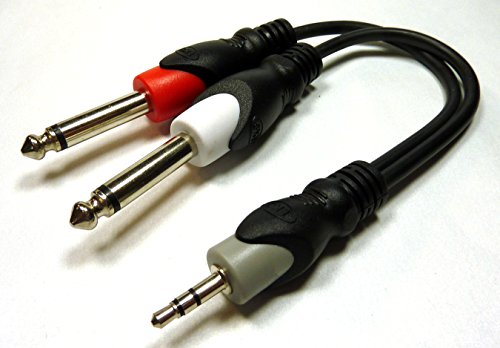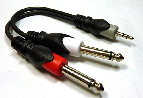 Stereo 3.5mm plug to two 1/4" male phone plugs. Perfect for I-Pod or computer audio applications where a mixer requires 1/4"" connections. Connect your laptop or PC with a jack speaker output to a device with 2 x 6.35mm jack inputs. 1/4-inch Plugs Color coded - Red and White. Philmore quality you can trust