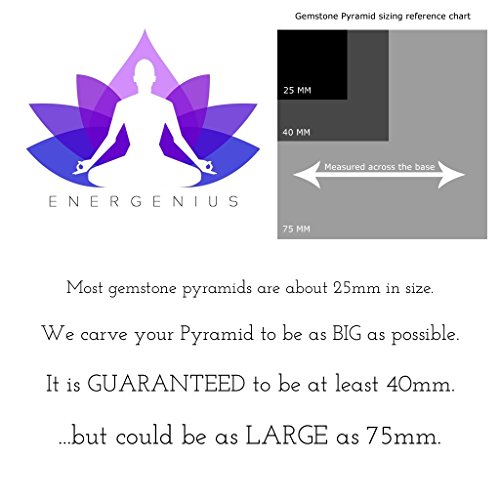 BIGGEST SIZE & SMALLEST PRICE Hand Polished to reveal the gemstone's natural beauty! Balance the energies of your mind and body. The pyramids are carved from natural gemstone and will vary slightly in color and size. WE GUARANTEE YOUR PYRAMID WILL BE AT LEAST 40mm (2") However, we carve the pyramids to be as BIG as possible, meaning yours could be up to 75mm (3") All measurements are across the pyramid base as shown in the images above
