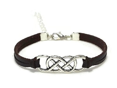 The Double Infinity Bracelet is made of dark brown faux suede leather cord, an antique silver or bronze double infinity charm and silver/bronze plated findings. You can choose the charm colour and the wrist size. The size of your bracelet will be the wrist size you select in the drop-down menu plus 5cm adjustable chain. ____________________________________________________________________________________________ All pictures are taken of actual products, but monitor settings may affect the colour you see on screen. Also, the colours may look slightly different due to the lighting when the picture was taken and limitations in photography. ________________________________________________________________________________________________________ For more options, please visit our store on www.amazon.com/handmade/DeluxeSparkle