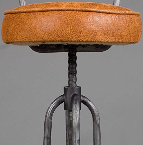 With such a unique look and functional construction this leather seat bar stool would make a great addition to any home bar. The frame is a brushed aluminum expertly welded together for maximum strength. The vertical supports are gently curved which adds interest to the bottom while the rounded back / arm rests provide comfort while sitting. Combined with the screw mechanism that allows the seat to adjust up and down, this gives these stools an industrial chic look that is very in right now. The seats can adjust (by spinning them) up and down from a seat height of 31.5″ to 36.5″ while the overall height goes from 38.5″ to 43.5″. The leather seats on this bar stool provides a soft contrast to the metal and are quite comfortable to sit on. Using a high grade cow hide leather provides the seat with lasting durability and comfort. Their light brown color should match well with any decor in the room. The diameter of the bar seats is 14″. This leather bar stool would do great in a home bar or at a breakfast counter in the kitchen eating area. We can always get more, so if you require a larger number just send us a message and we can order them for you.