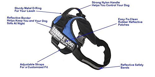 What You Can Expect From This Product: ✔Removable chest plate ✔Removable / Interchangeable Reflective LOVABLE DOG Vest Patches ✔Easy to grab handle ✔Reflective chest strap and trim ✔Durable, breathable and comfortable fabric ✔Fast drying after water activities ✔Comfortable neoprene lining eliminates chaffing ✔Adjustable, custom fit chest and belly straps Usage And How This Product Solves Your Problems: - Having better control during dog working, walking and training - Conveying your dog's status - Securing your dog while riding in your car - Keeping you and your dog safe at night - Providing cool comfort to your dog in summer Why PetsUp Harness Stands Out From Competition: This harness exudes quality and style. While manufacturing it, meticulous detail of keeping a dog comfortable is given the utmost priority A dog on the move pants and feels hot, hence the underside padding is made of soft mesh to provide the cooling effect. The handler of the dog is also taken into account by making this product an easy daily use accessory In a nutshell, this product is more humane than any other pet accessory product in the same niche. Guarantee: You have nothing to lose.If for any reason you are not completely satisfied simply return for a FREE Replacement or a Full Refund Support: We stand behind all of our products, your any request will be responded within 24hrs. We are satisfied when you are satisfied If you care for your buddy as much as you do for yourself, it is just for you!........GO GET IT!