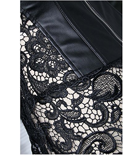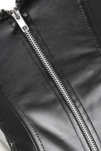 For fun and sexy dress-up, you can't do better than this beautiful faux leather bustier corset with lace skirt. Perfect for costume parties, cosplay conventions, nightclubs, or for an intimate night at home with your significant other. This super-sexy fashion item can be worn by itself or as a part of any number of costumes. Designed for flexible comfort as well as body shaping, the corset material is buttery soft and has polymer "bones" to keep its shape. The lace-up front accommodates different body types, and the quality materials and precise stitching throughout make this a durable piece of clothing that moves with you through all types of dance or play. IMPORTANT: Use these size charts, not the Amazon size chart linked above. For US Sizes, inches: X-Small: Waist: 20-22"; Bust: 39-31"; Corset Length, Front: 13.8"; Back: 12.2"; US Size: 0-2 S: Waist: 22-24"; Bust: 31-33"; Corset Length, Front: 13.8"; Back: 12.2"; US Size: 2-4 M: Waist: 24-26"; Bust: 33-35"; Corset Length, Front: 13.8"; Back: 12.2"; US Size: 4-6 L: Waist: 26-28"; Bust: 35-37"; Corset Length, Front: 13.8"; Back: 12.2"; US Size: 6-8 X-Large: Waist: 28-30"; Bust: 37-39"; Corset Length, Front: 13.8"; Back: 12.2"; US Size: 8-10 2X-Large: Waist: 30-32"; Bust: 39-41"; Corset Length, Front: 13.8"; Back: 12.2"; US Size: 10-12 3X-Large: Waist: 32-34"; Bust: 41-43"; Corset Length, Front: 15.4"; Back: 13.4"; US Size: 12-14 4X-Large: Waist: 34-36"; Bust: 43-45"; Corset Length, Front: 15.4"; Back: 13.4"; US Size: 14-16 5X-Large: Waist: 36-38"; Bust: 45-47"; Corset Length, Front: 15.4"; Back: 13.4"; US Size: 16-18 6X-Large: Waist: 38-40"; Bust: 47-49"; Corset Length, Front: 15.4"; Back: 13.4"; US Size: 18-20