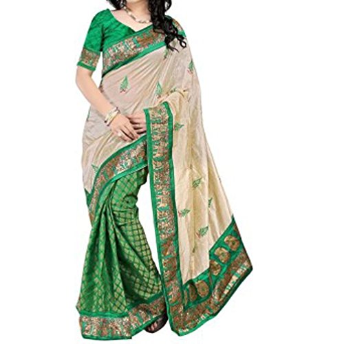 * Designer Party wear Silk saree . * Sale For: 1 Saree with Unstitched Blouse Fabric. * Material: Silk * Color: Green & Beige. (Due to the inherent nature of photography color of the might look a bit darker or lighter in the picture.) * Wash Care: Dry Clean * Any accessory worn by the model is not for sale. *Important Note: The Sari may or may not come with the blouse piece show in the image. P.S: This saree comes with Unstitched Blouse Fabric. We Do not provide any stitching service for blouse or the fall.