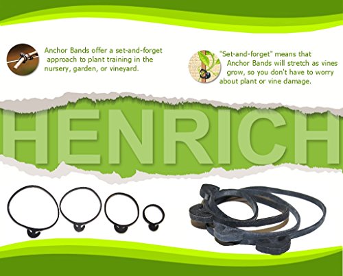 For years nurseries and vineyards have used Henrich anchor bands as their chosen solution for vine training and plant support. Unlike plastic clips or ties, the rubber anchor bands are gentle on the vines they support and they stretch as the plant continues to grow. They are economical and quick and easy to apply. If you're frustrated trying to use twine, tired of having your ties fall in high winds, or disappointed by the damage caused by hard clips, try a bag of anchor bands. You'll soon find out why they are the professional's choice!