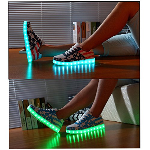 Size Chart(cm): 5US/35EU: Insole length: 22.5, Fit foot length: 22 5.5US/36EU: Insole length: 23, Fit foot length: 22.5 6US/37EU: Insole length: 24, Fit foot length: 23.5 6.5US/38EU: Insole length: 24.5, Fit foot length: 24 7US/39EU: Insole length: 25, Fit foot length: 24.5 7.5 US/40EU: Insole length: 25.5, Fit foot length: 25 8US/41EU: Insole length: 26.5, Fit foot length: 26 8.5US/42EU: Insole length: 27, Fit foot length: 26.5 9US/43EU: Insole length: 27.5, Fit foot length: 27 9.5US/44EU: Insole length: 28, Fit foot length: 27.5 10US/45EU: Insole length: 28.5, Fit foot length: 28 10.5US/46EU: Insole length: 29, Fit foot length: 28.5 Package Include: 1 * Pair of LED Shoes Note: Due to different production batches, please allow 1-3cm error. Shoes can be cleaned by soft fabric, But cannot be washed.