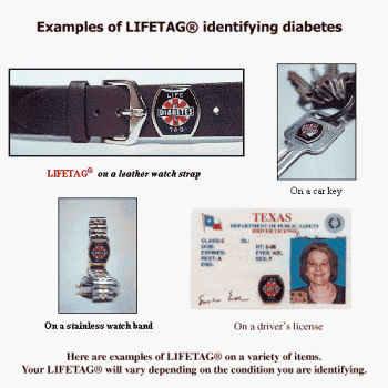 Included with 5 stick ons: • Adhesive • Instructions • 2 wallet ID cards Wear LIFETAGs to alert emergency medical technicians that you are allergic to latex. Each Latex Allergy LIFETAG is 7/16 inches wide and 7/16 inches long, is easy to attach and can be worn virtually anywhere including your keys, driver's license, credit card, key chain, insulin pump, glucose meter or anything else that you carry regularly. Children can put it on their lunch box, zipper pull, shoelaces, or belt. On your watch clasp a medic will see it immediately while searching for a pulse or a place to begin an IV. Printed on brass with an adhesive backing. Included with order is a tube of extra strength adhesive. For more life-saving identification products visit LIFETAG.com