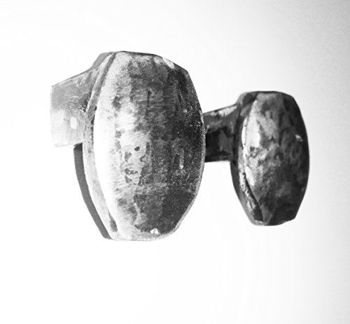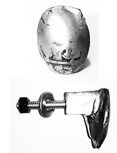 These are wonderful knob handles designed from antique railroad spikes. These are perfect for antique dresser restoration, reclaimed lumber projects, and other rustic applications where the irregular hammer marks and beautiful patina will enhance the primitive charm of the decor. Knobs are individually hand-crafted by our metal artist right here in Southern Oregon, so some variation occurs, with a 1.25" - 1.5" projection and a 1.25" screw (.25" across) - perfect for 1/2 inch to 3/4 inch wood. Can be used for 1" wood without the washer. Around 1.5" tall, and each weighing about 5 ounces with hardware. Hardware is included- pre-installed mounting post, washer, and nut, as pictured.
